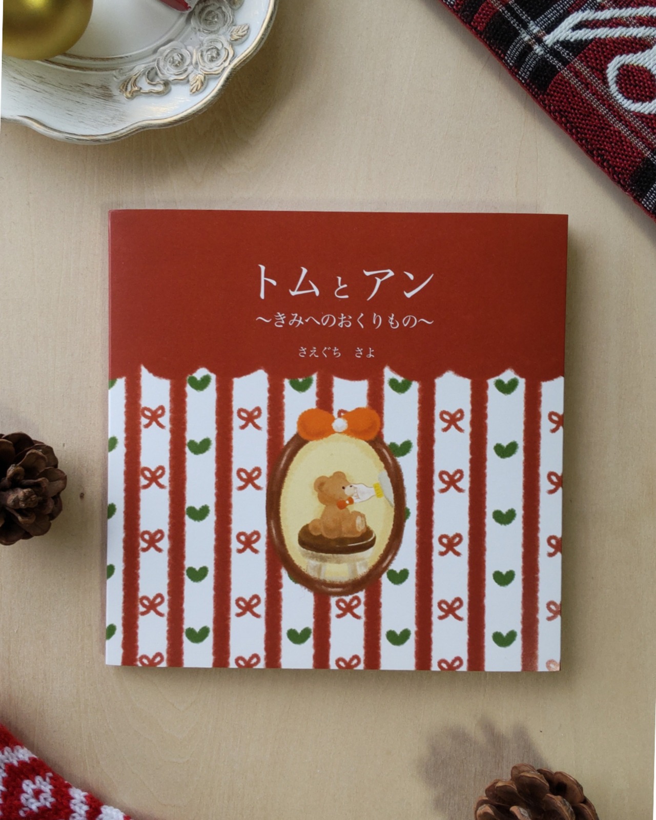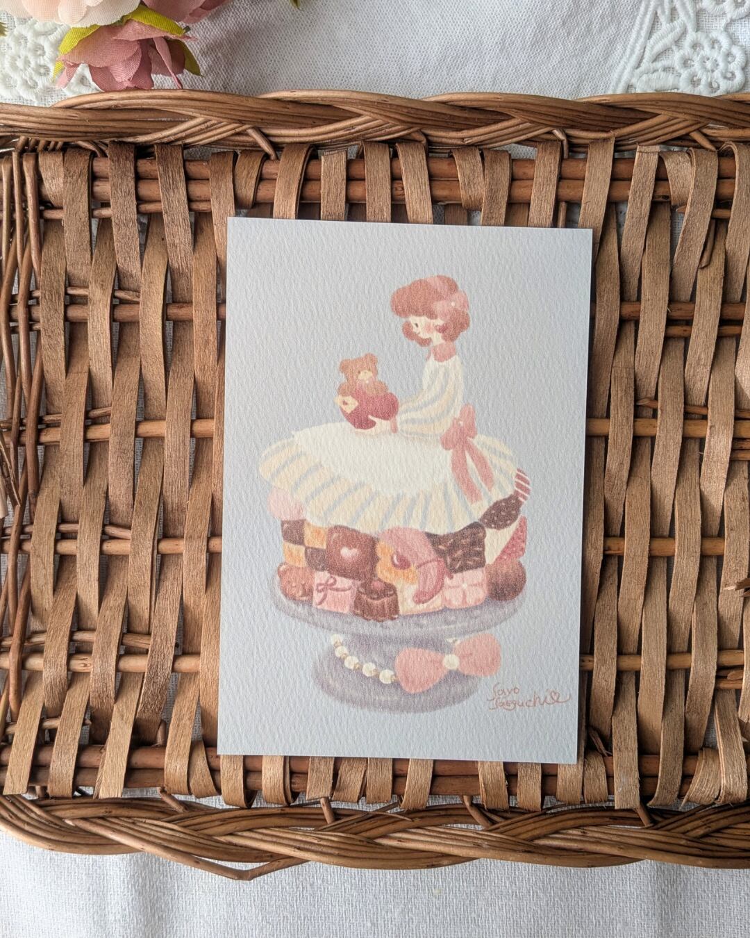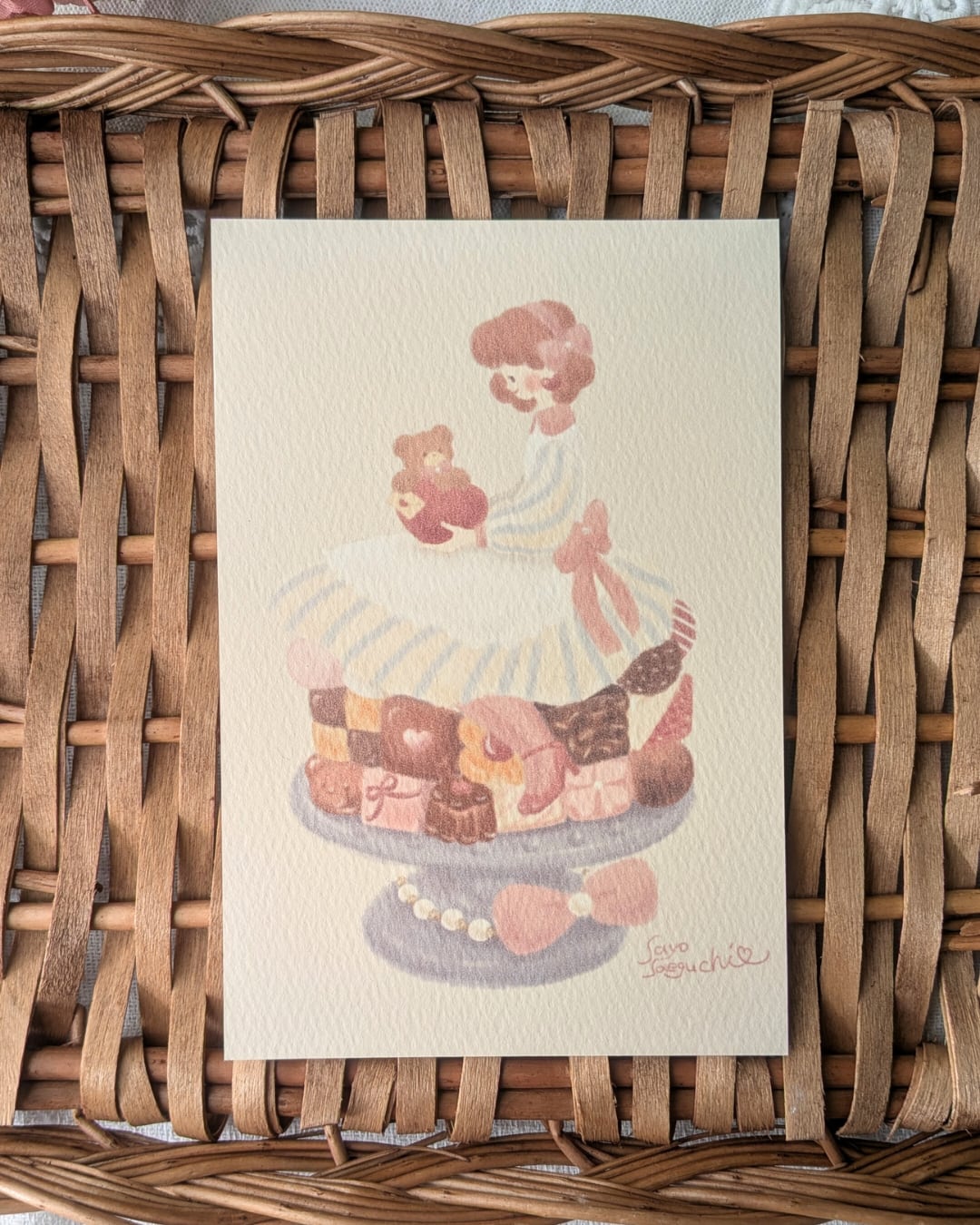 アンの膝の上にちょこんと座っているのはくまのトム。もふもふの手にはアンへのラブレター。濃厚なブラウニーやクッキー、ストロベリーチョコレート。隅々まで眺めて頂きたい一枚です。