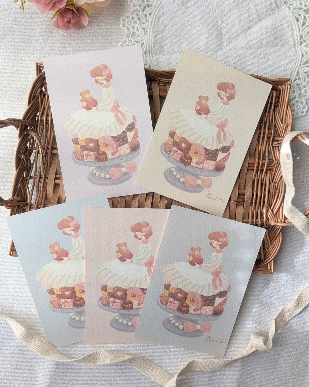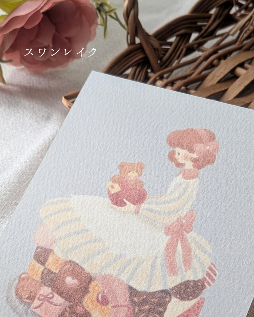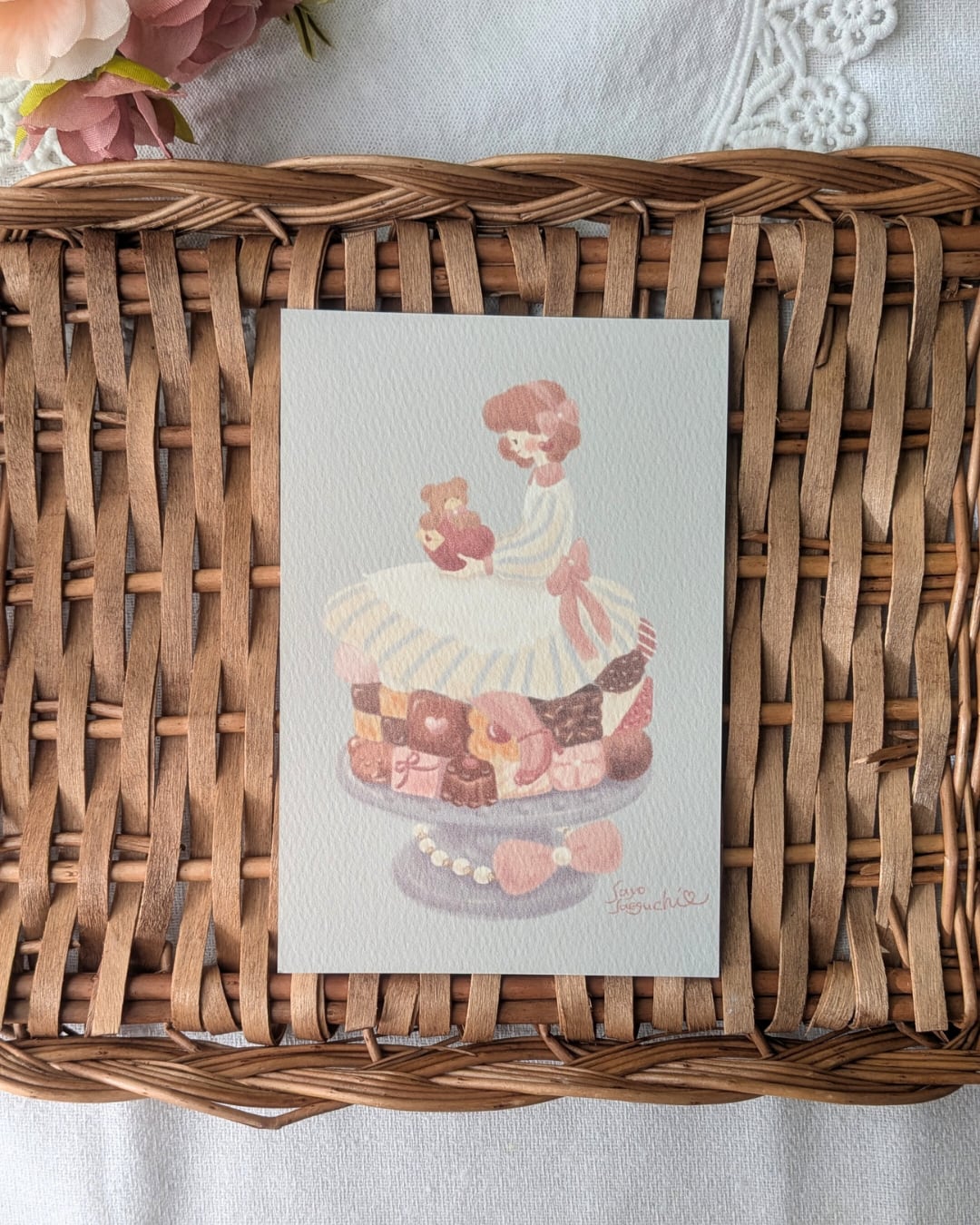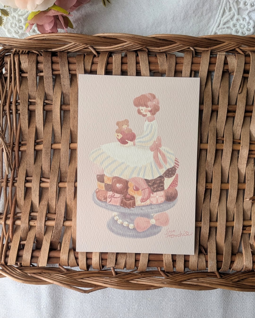 アンの膝の上にちょこんと座っているのはくまのトム。もふもふの手にはアンへのラブレター。濃厚なブラウニーやクッキー、ストロベリーチョコレート。隅々まで眺めて頂きたい一枚です。