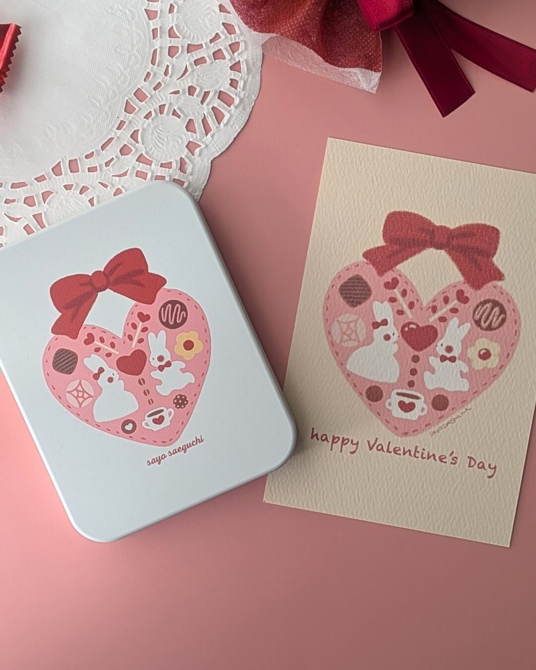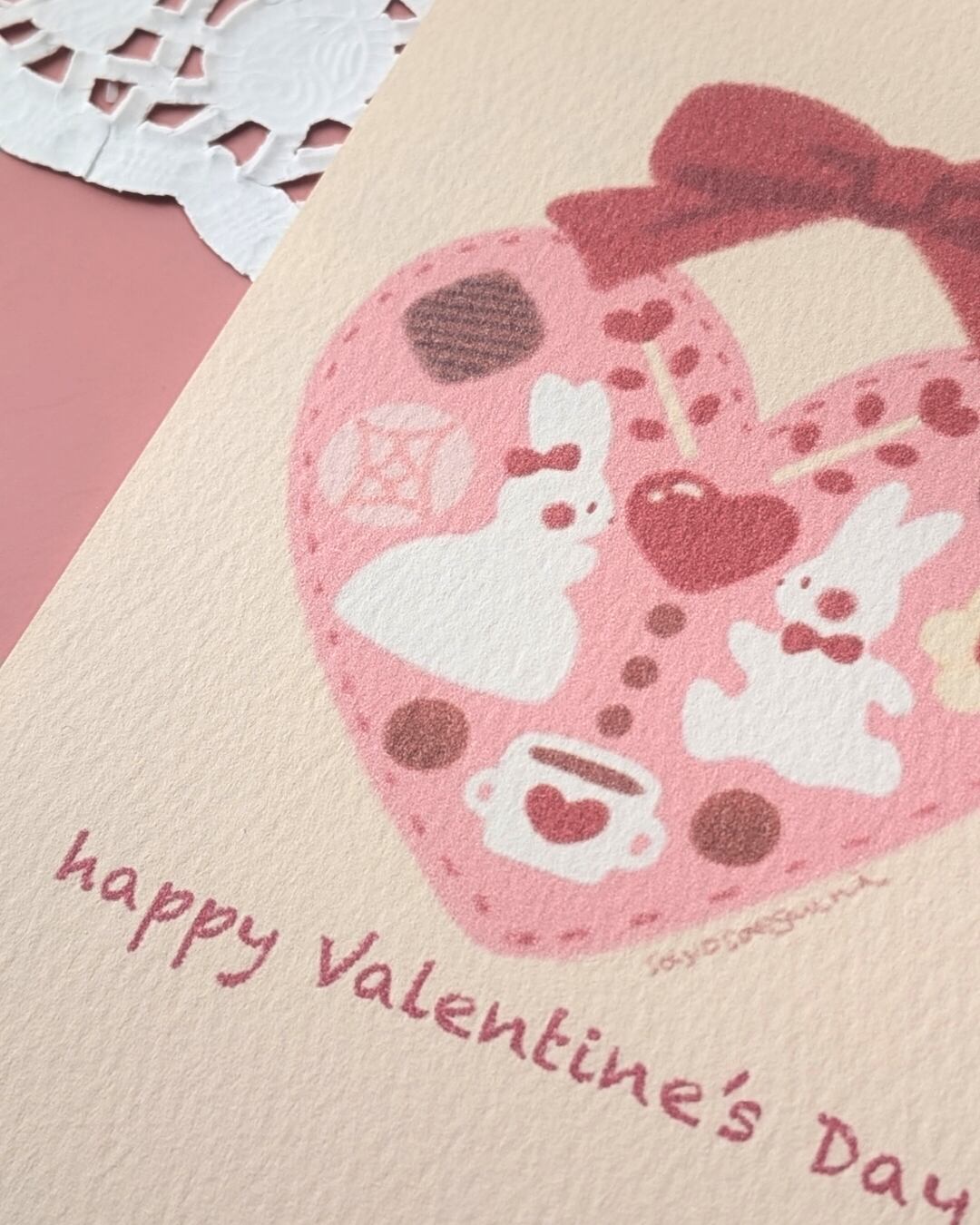 ハートのショコラの前にやってきたふたり。伝えたいきもちがあるみたい。ちいさな白うさぎたちの物語が始まります。