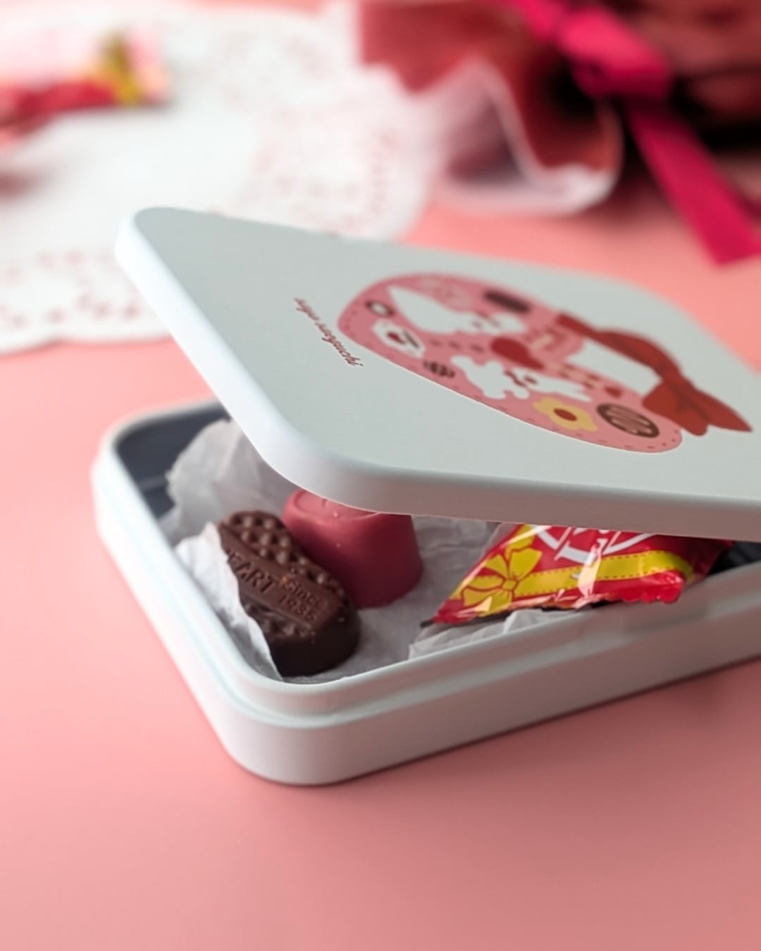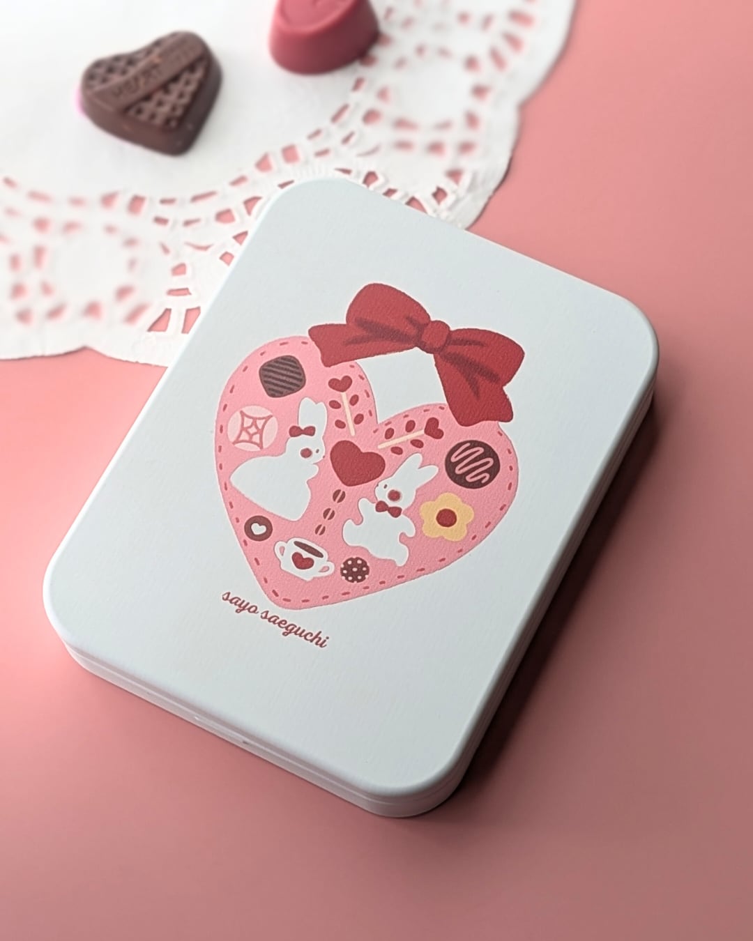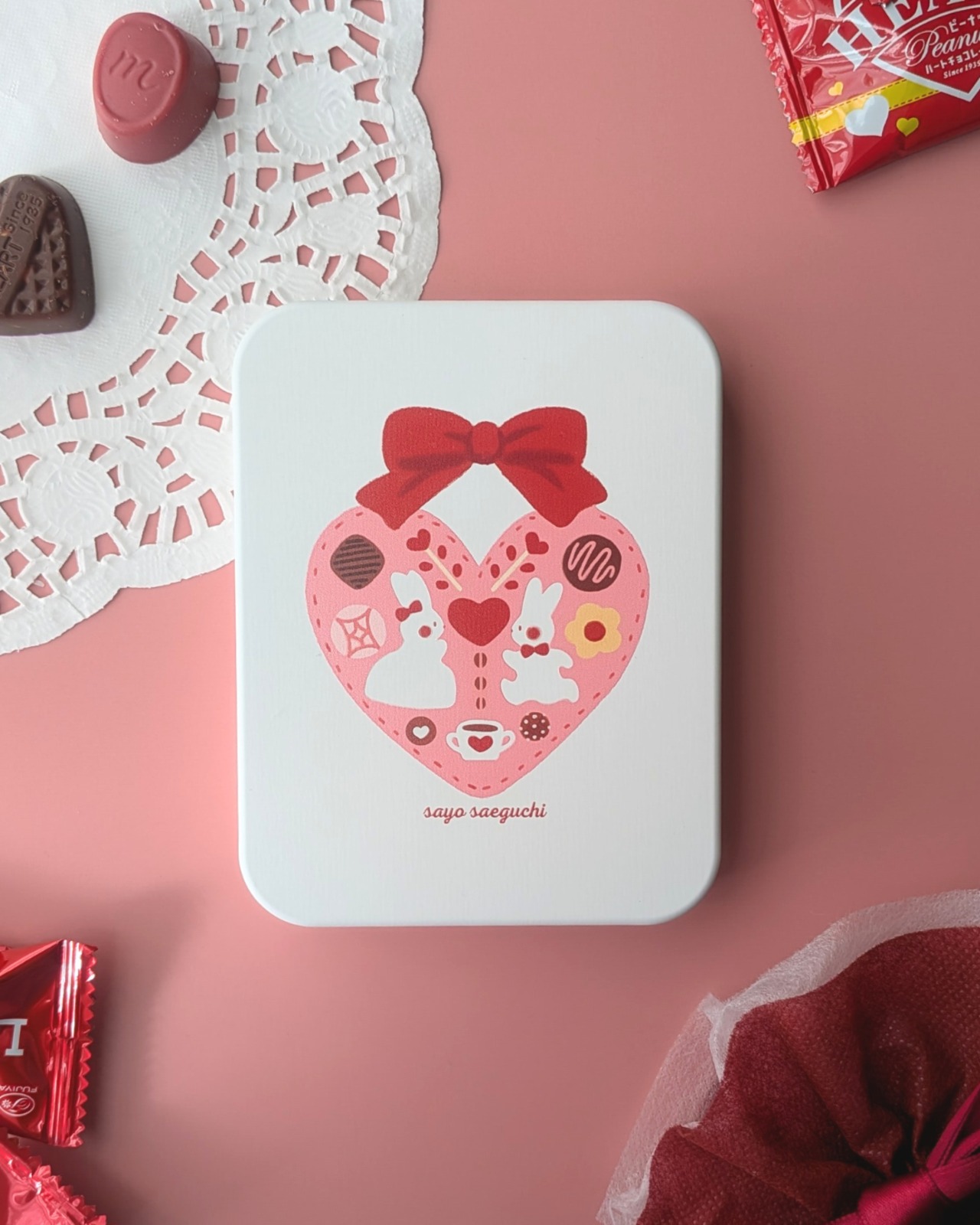 ハートのショコラの前にやってきたふたり。伝えたいきもちがあるみたい。ちいさな白うさぎたちの物語が始まります。