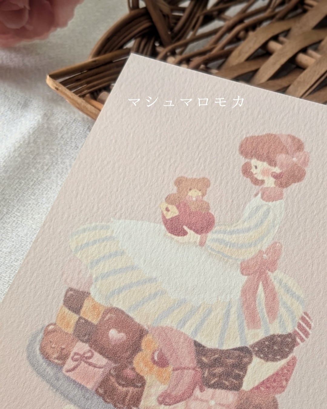 アンの膝の上にちょこんと座っているのはくまのトム。もふもふの手にはアンへのラブレター。濃厚なブラウニーやクッキー、ストロベリーチョコレート。隅々まで眺めて頂きたい一枚です。