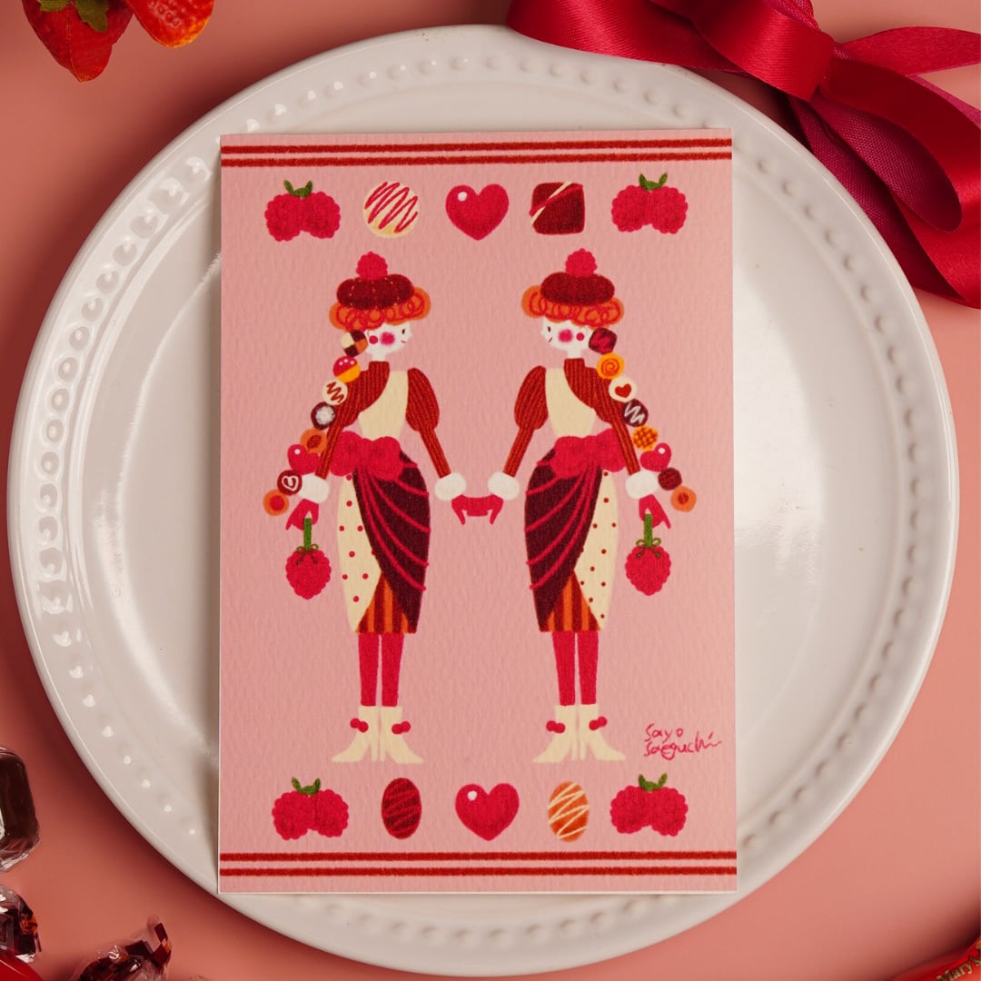 サイズは14.8cm×10.5cm。質感のある紙を使用しており、手触りの良さと温もりが特徴です。バレンタインギフトや大切な人へのメッセージに。お部屋に飾るのもおすすめです。